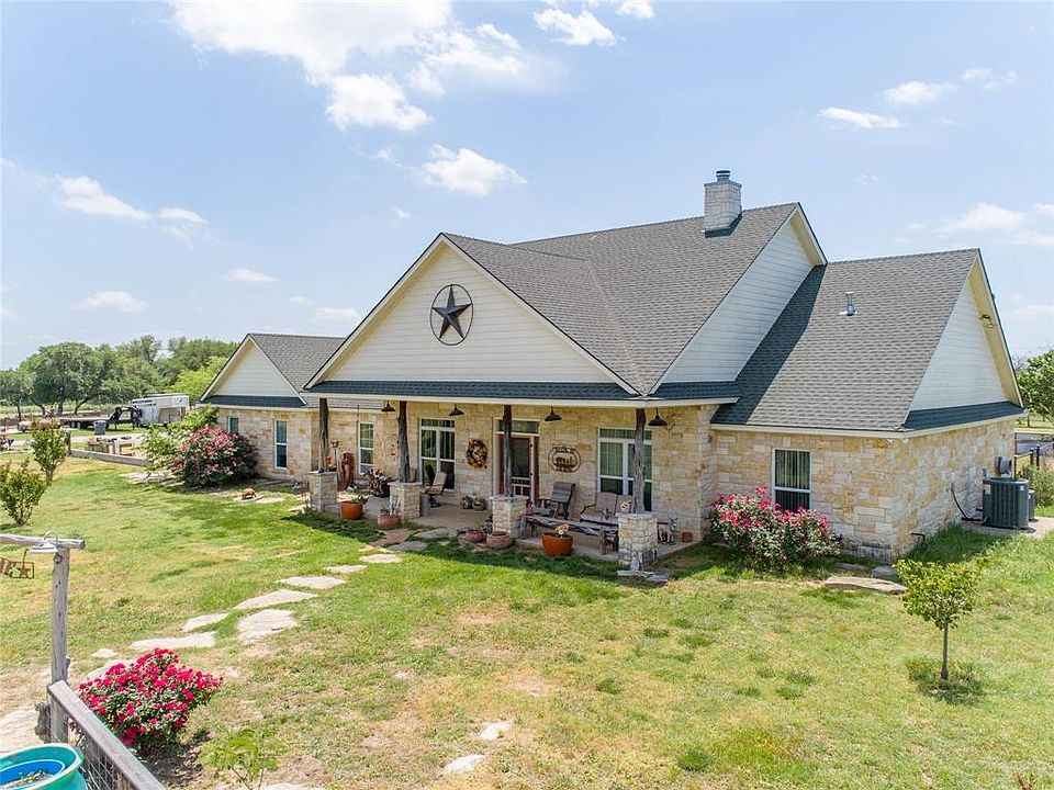 Beautiful small acreage Texas Ranch & Country Living at it's finest. This gorgeous property has a custom built Austin Stone home on close to 50 acres with incredible views of the surrounding area. Main house is stunning with an awesome gourmet kitchen featuring a dbl oven, granite countertops, big pantry, & lrg island bar. Expansive ceilings, lrg fireplace, split bedrms, master suite, &small guest aprt &that is just the main house. Guest house is 1450sqft. Also part of the grounds are adtl buildings for horses, goats, llamas whatever you raise on your hobby farm or 4H project. This home is your own slice of picturesque Texas Country Ranch living. Hi Speed 100MB available.