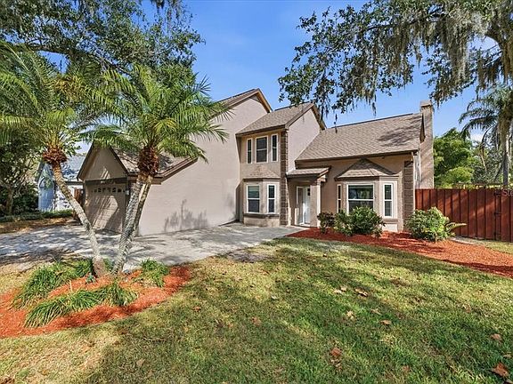 Nestled on a desirable corner lot in the sought-after Turtle Creek community, this inviting 4-bedroom, 2.5-bath home offers the perfect blend of comfort, style, and modern updates. The spacious layout features the Primary Suite conveniently located on the main floor, complete with a spa-like ensuite bath and beautifully updated finishes. The heart of the home is the updated kitchen, offering ample cabinet space, modern appliances, and an easy flow to both the dining area and family room—ideal for everyday living and entertaining. The family room impresses with soaring vaulted ceilings and a cozy wood-burning fireplace, creating a warm and welcoming atmosphere. Step outside to your private screened-in oasis featuring a sparkling pool and spa, perfect for year-round relaxation and gatherings. Enjoy peace of mind with major improvements already completed: new roof, paid-off solar panels, and updated windows and doors for enhanced efficiency and durability. With its prime location, such as easy access to upper tampa bay trail, thoughtful upgrades, an inviting floor plan, this Turtle Creek gem is truly move-in ready
