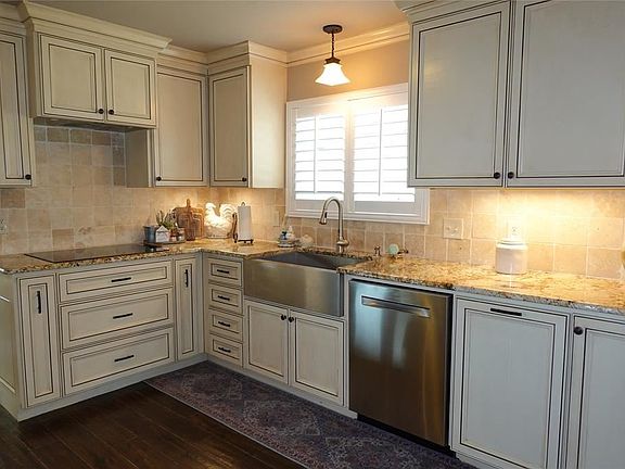 This beautifully refinished home looks like it is straight from a design magazine! The wood-look tile floors and gorgeous granite countertops will suit any style. Enjoy the views of the fabulous backyard and amazing pool from the spacious living room, large breakfast room and designer kitchen. The covered patio and outdoor kitchen will allow you to enjoy this backyard oasis all year round! As an added bonus, there is a full garage apartment over the 3-car garage (not included in the HCAD sqft). This extra space includes a living room, kitchenette and 2 bedrooms. Perfect for a guest, a kid home from college, in-laws, etc. - the possibilities are endless! Lots of recent upgrades include roof (2020), pool heater (2022), AC unit (2022 - replaced one unit - other was approximately 5 years ago), and hot water heater (2018). The kitchen is a chef's dream with custom cabinetry including a cabinet microwave and a built-in food warmer. Hurry - this one won't last long!!