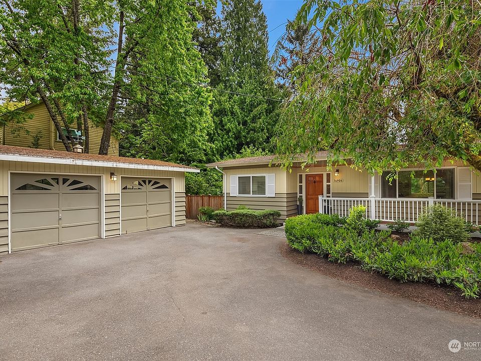 Timeless and charming renovated daylight rambler, 3 bed, 2 bath, well laid out to promote gathered moments, relaxed living and entertainment. Sited on a large 11,510 sq ft lot with thoughtfully maintained landscape dotted with fruit trees. Easy flow to custom covered entertainment sized deck. Refinished solid oak floors, new paint, updated kitchen features granite, renovated upper bath hosts modern quartz. Primary suite presents deep claw foot tub, spacious walk in closet, and French doors to lovely private covered patio. Brand new heat pump and AC keeps you warm and snug in the winter, refreshed in the summer. Award Winning Northshore Schools. Inglemoor Baccalaureate. Moments to shopping, dining, parks. 1yr Home Warranty. A gem!