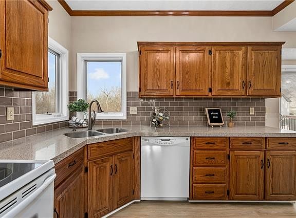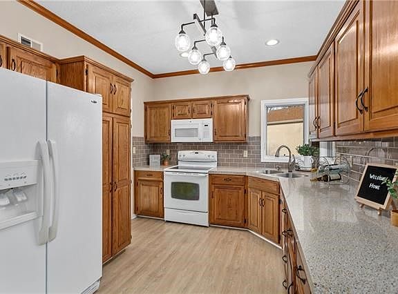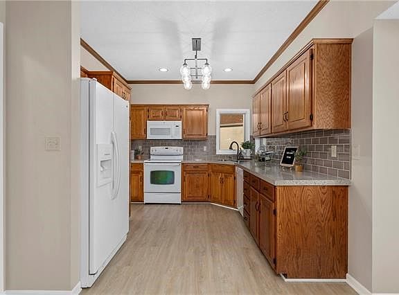 Rare opportunity in Timberlake! The list of updates is long on this 2-story home...updated gorgeous master bathroom, new beautiful subway tile kitchen backsplash, new carpet, countertops, and paint throughout, newer roof, a/c, windows, and siding, new LVP in kitchen, breakfast area, and family room, refinished hardwoods, newer siding on the back and sides of the home. There is plenty of closet space in the master bedroom with his and her closets! This home sits on a large lot with a fenced backyard and includes an oversized garage with a bonus garage space in the unfinished, walk-out basement. Enjoy the tranquil backyard from the HUGE newer deck! Less than 5 minutes from the highway and Basehor-Linwood schools. Don't miss seeing this gem!
