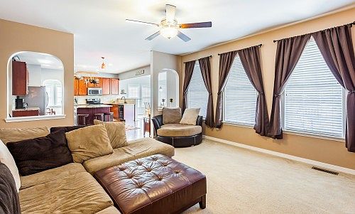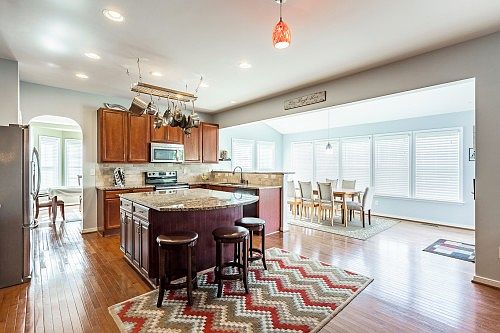 Wonderful home in a great community. Well maintained and move-in ready, this open floor plan transitional boasts hardwood floors throughout much of the first level and an incredible kitchen featuring granite countertops and stainless steel appliances. Kitchen opens to a spacious family room with gas fireplace and a generous morning room. French doors lead to a custom deck with pergola and built in bench overlooking a fenced rear yard that is perfect for entertaining. Formal living room with crown molding, large formal dining room with tray ceiling, powder room, laundry room, plenty of natural light, and 9' ceiling complete the main level. The huge double door master suite with Jacuzzi tub, his and hers walk in closets and sinks also offers extra storage closets. Finished third floor / 5th bedroom also offers additional storage and could make a perfect rec room, craft room, or gym. New heat pump and air handler, two car garage with overhead storage, irrigation, walking distance to the community pool, and great schools.