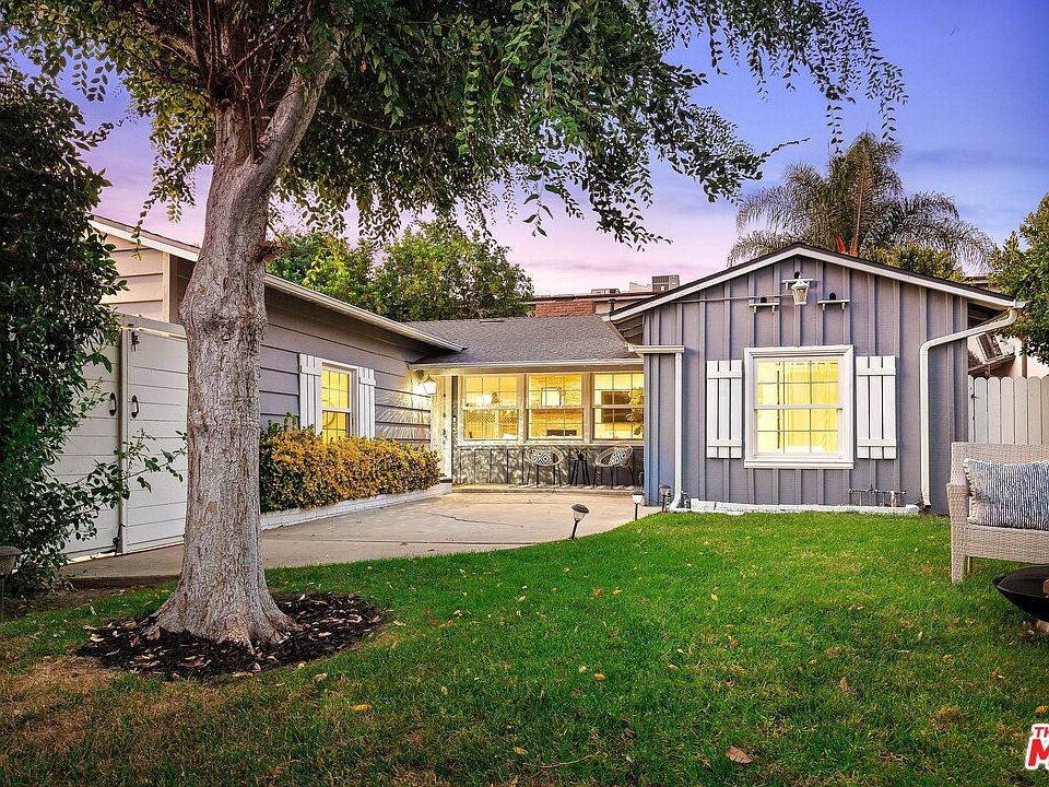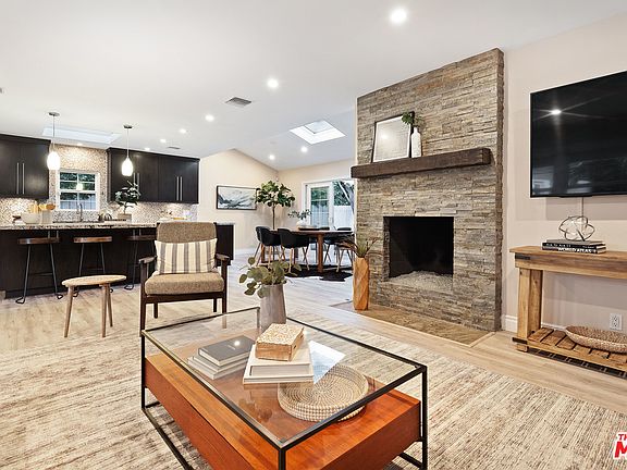 Modern living in the highly sought-after Kester Elementary school district. Hidden behind a privacy hedge lies a tree-shaded grassy yard welcoming you to a sophisticated, light-filled residence. This spacious, open-concept home features an ideal floor plan with clean lines, a vaulted ceiling and skylights. An entertainer's utopia, the cook's kitchen is graced with an oversized island and bar seating adjoining a dining area complete with wet bar and wine fridge. Floor to ceiling sliders lead to the pergola-covered deck and garden: a serene haven for outdoor dining and lounging under the twinkling lights. Two bedrooms include a primary with spa bath ensuite. Direct access entry garage provides ample flex space for work-from-home office, creative studio, den or yoga retreat. Plentiful driveway parking. Updated systems and smart home technology throughout. Zoned LARD3 for possible redevelopment potential.