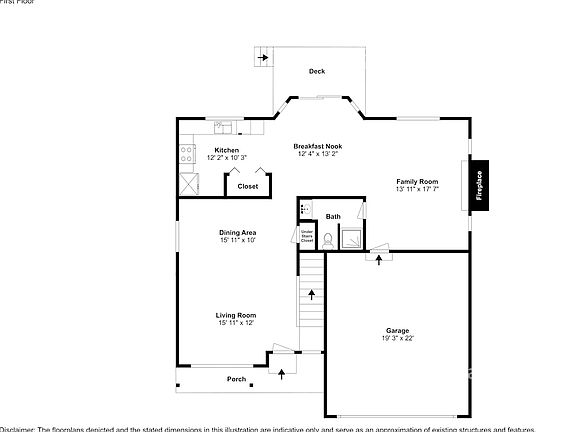 Attractive fireplaceNatural lightWood deckAiry living spaceAmple workspaceVinyl plank floorsStainless-steel appliances
