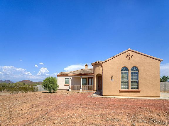 BEAUTIFUL DESERT LIVING! Surrounded by mountain views! This 2542 single story home offers 4 bedrooms 2 baths. Solar screens, Vaulted & 12 ft. ceilings. Prodigious great room includes built in entertainment & fireplace. Formal dining and open kitchen with NEW SS appliances, granite and 42'' maple spice cabinets with crown molding, spacious walk in pantry. Master suite is stunning, Grand custom stone jacuzzi tub & oversized shower, his and her sinks with granite, custom built in shelves in large master closet. 2 french dbl doors, 3 arcadia doors, windows galore for that open feeling. Beautiful front & back covered patios w/pillars to sit and enjoy mountain & sunrise/sunset views. Oversized extended garage with side entrance. Block fencing surrounds this acre property providing 2 RV gates