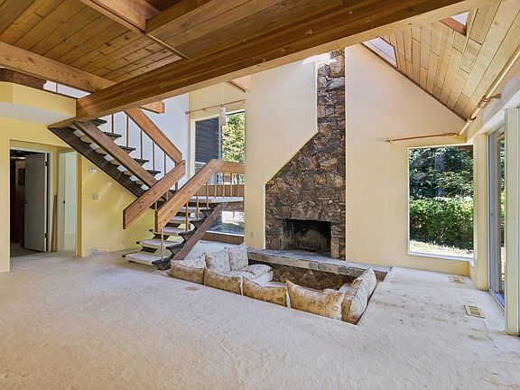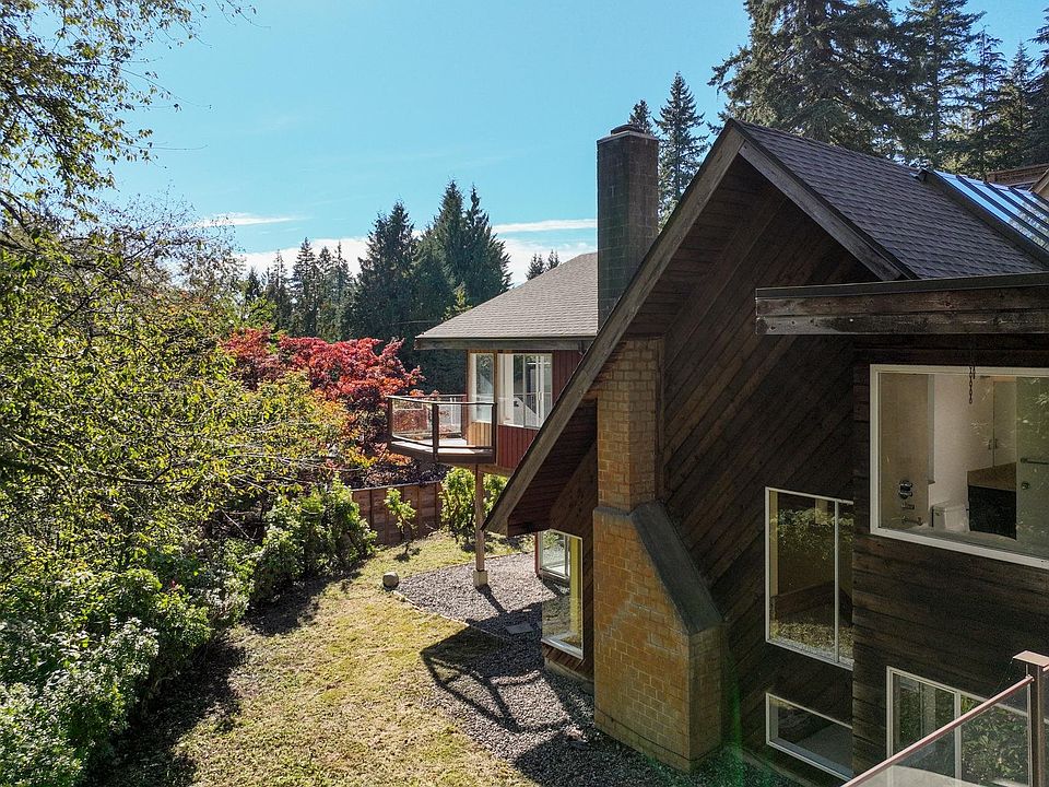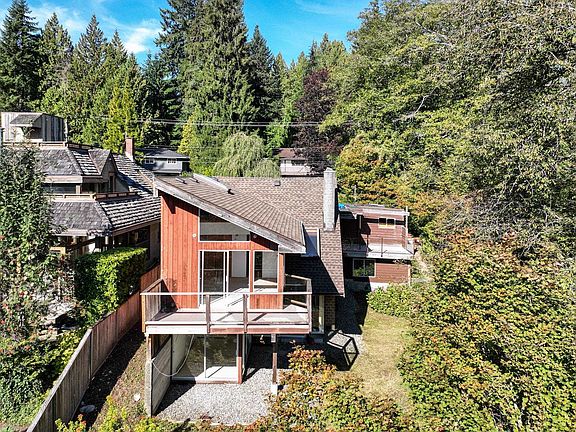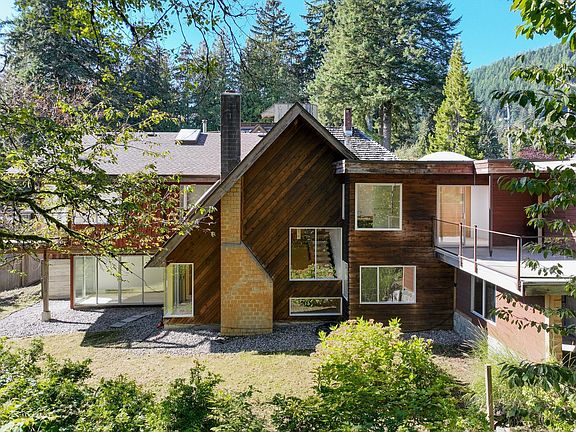 One-of-a-kind Upper Lynn architectural home, designed by Dick Goldammer, set on a south-facing lot backing onto a peaceful greenbelt. Designed for privacy and connection to nature, it features vaulted cedar ceilings, expansive picture windows, and skylights that fill the home with light. The near-level main floor includes a kitchen with large eating area overlooking the living room below, plus two bedrooms, including a primary with ensuite and balcony access. The walk-out lower level offers a striking sunken living area with wood fireplace, a third bedroom, den, and large laundry/utility room. Set on a 56’ x 130’ lot with open parking and a cedar-lined carport, just steps to Upper Lynn Elementary, Argyle Secondary, and endless trails—a true architectural gem ready to be reimagined.