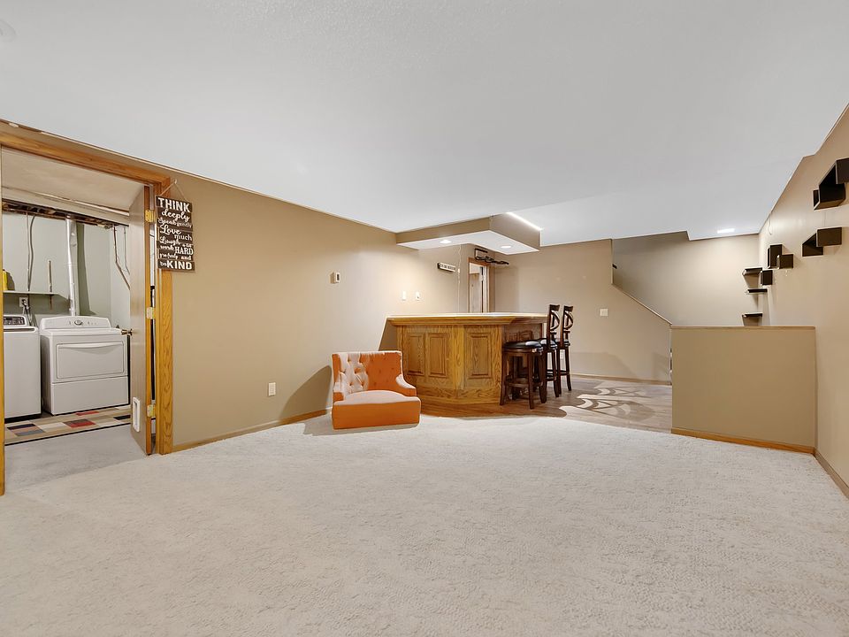 This stunning home offers the convenience of single-level living with all 4 bedrooms thoughtfully situated on one floor. Boasting 4 bathrooms, the home is bathed in natural light, enhancing its open and inviting atmosphere. The main floor features an open-concept kitchen and family room, perfect for entertaining or casual family time. A separate formal dining room connects seamlessly to the formal living room, ideal for hosting dinners and gatherings. The lower level is an entertainer's dream, complete with a hot tub, wet bar, and a spacious amusement room. Step outside to enjoy the nice size deck, perfect for outdoor relaxation. Located just steps from Briardale Park, you'll have easy access to scenic walking paths and outdoor recreation. This home combines comfort, style, and an unbeatable location.