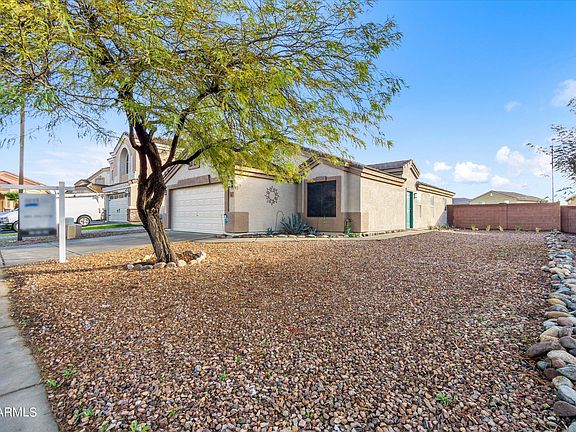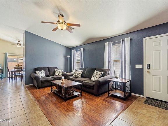 No age restriction! Don't miss out on the great opportunity to own a lovely single-story home in Buckeye! This charming abode features a recently painted exterior and a practical 1-year-old AC system. The vaulted ceilings add a spacious touch to the cozy atmosphere. The sizable living room comes with newer flooring and paint, connecting seamlessly to an open kitchen equipped with a pantry and plenty of cabinet space. The master bedroom is spacious, offering ample closet space and a private en-suite. The split floor plan ensures roomy secondary bedrooms for added comfort. The backyard is a blank canvas for your personal touch. Conveniently located near shopping, hospitals, and just off the I-10.