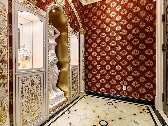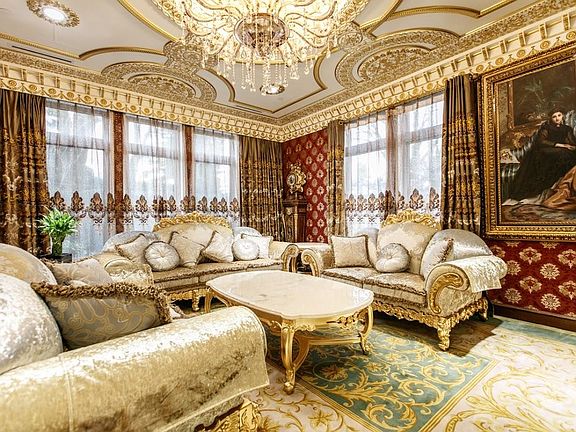 Vaulted ceilingEurope imported hardwood materialsNatural crystal chandelierGold phoebe handmade materialHand painted drawingsNatural stone color