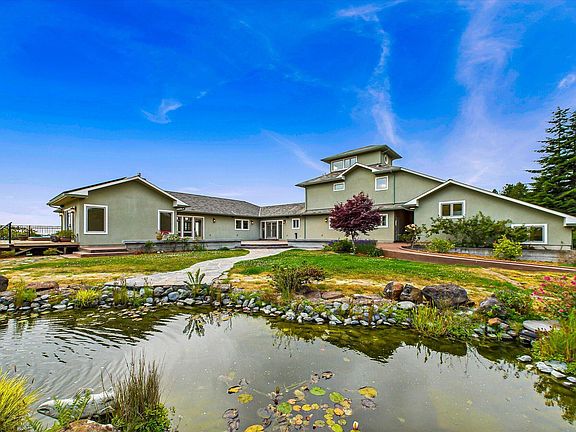 This stunning custom home in Bayside, CA, combines gorgeous views, impeccable quality construction, and the perfect hilltop location exactly halfway between Arcata and Eureka to provide an exceptionally high quality of life. Enjoy life to the fullest from this serene living space where every window offers a unique and beautiful view of the Pacific Ocean, Humboldt Bay, pastures dotted with historic barns, mountains to the east, Fay slough in the distance meandering to the bay, spectacular sunsets, and especially great city lights views at night. The viewing turret offers even more expansive views of the ocean, bay, and surrounding landscapes.