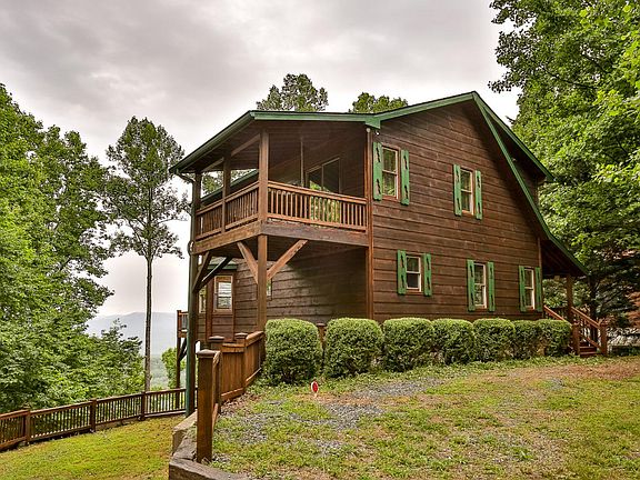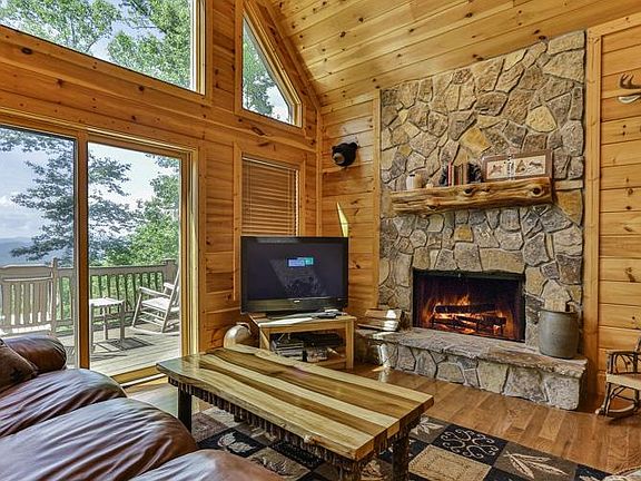 Yabba Dabba Do Time! Come enjoy this huge Mountain VIEW from inside and outside this dynamic cabin! It's your lucky day--Back on the market (buyer couldn't sell his house). Enjoy a large wall of view facing windows showcasing the beauty of North GA from all over the home-family room, loft, kitchen, master private porch.Granite, SS appliances, wood burning FP, great rustic blends. Full bathroom on each level. Finished room on terrace level for movies, games, etc. or can be additional bedroom. Single car garage. Available fully furnished, this cabin is located in popular Walnut Mountain community, w/all paved rds, public water, hiking trails, several small lakes, This is the perfect mountain getaway! This cabin has never been in the vacation rental program and belongs to the original owner (rentals are allowed in this community).Newly stained. Come enjoy mountain living!