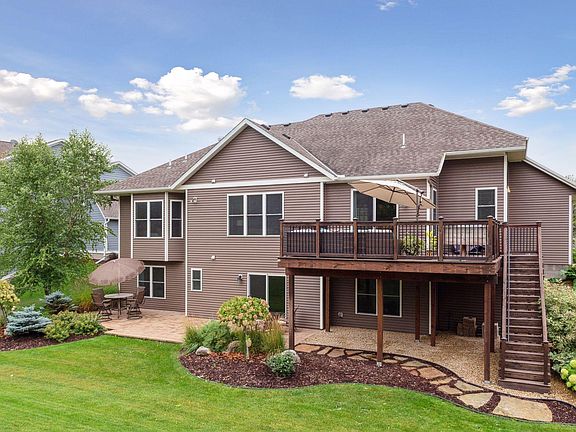 Don't miss this impeccably maintained, custom-built 4BR/3BA executive rambler! Here's your chance for exceptional one-level living in a newer home. You'll love all the large windows and scenic views offered throughout the home. Great room features a gas fireplace w/ stately brick surround and built-ins. Kitchen is a chef's delight w/ large center island, granite countertops, S/S appls including a gas cooktop and double oven, and a pantry closet. Dining area opens to home's 20x14 deck overlooking the peaceful greenspace. XL owner's suite features a grand bay window, private full BA, & walk-in closet. Handy mudroom w/ lockers and laundry on main level, too. Finished LL walkout provides more terrific living spaces. Enjoy relaxing beside home's 2nd gas fireplace or exercising in the flex space. Wet bar area opens to XL paver patio(>450 sq ft!). 3-car garage. Concrete driveway. Irrigation system. Just steps to Northwest Greenway trails and Pomerleau Lake. Easy access to 494. Don't miss out!