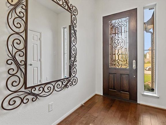 Beautiful single-story home in Fall Creek offers fantastic curb appeal and an ideal location with just a short walk to Autumn Creek Elementary. The home has no back neighbors for added privacy. The open floor plan features 4 spacious bedrooms, 3 full baths, a formal dining room and a large flex space/bonus room with surround sound wiring and double doors for a quiet retreat. Stylish finishes include wood and tile flooring, fresh interior paint, 2" blinds, and high ceilings throughout. The kitchen is a chef’s delight with stainless steel appliances, a huge island, breakfast bar, and rich mocha-colored cabinetry. The family room is warm and inviting, featuring a gas log fireplace with a tiled accent wall. Enjoy a low-maintenance backyard with French drain, sprinkler system and generous side yards—perfect for relaxing or entertaining. Located in the sought-after Fall Creek community, home of the Golf Club of Houston, this move-in-ready property combines comfort, style and convenience.