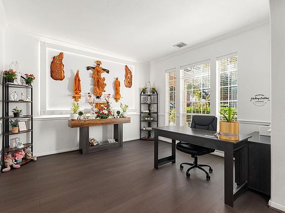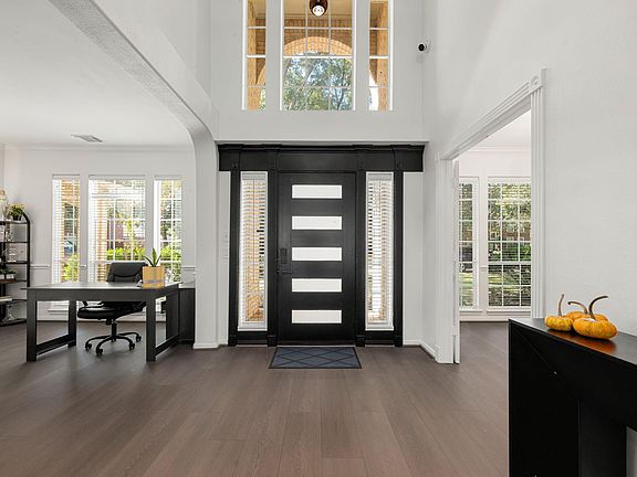 Beautiful 2-story home featuring 5 beds, 3.5 baths, nestled on a quiet cul-de-sac lot with a very low tax rate and a whole-house aroma diffuser for everyday comfort. Built with 4-side bricks and a 3-car garage, this elegant home greets you with an office on the right and a flexible room on the left—perfect as a guest bedroom or home office. The open living area showcases a new electric fireplace (2025) and large windows that fill the space with natural light. The gourmet kitchen offers granite countertops, 42" cabinets, stainless steel appliances, and a breakfast nook adjoining the formal dining area overlooking the backyard. The primary suite includes dual vanities, soaking tub, separate shower, and walk-in closet. Upstairs features a large game room for family fun. Roof and HVAC replaced in 2024, new flooring 2025, and water heater 2022. Enjoy a private fenced backyard near pool, tennis courts, trails, and park. Zoned to top-rated FBISD schools.