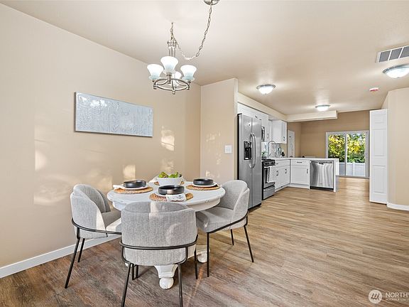 Move in Ready home in the Berry Farm Community. This beautiful and rare 3 bed 2.5 bath home backs to a green-belt (not other homes). Updated functional kitchen offers eating bar and SS appliances. Primary bedroom is spacious with walk-in-closet and bathroom. This home has NEW paint, new floors, newer water heater, newer roof too! Enjoy open-concept living space with vaulted ceilings, that includes a separate bright dining area. Peaceful fenced yard with patio offering lawn and privacy! Plus - large community playground. Outstanding location- near the NEW Amazon distribution, plus shopping, fine dining and just few minutes to I-5.
