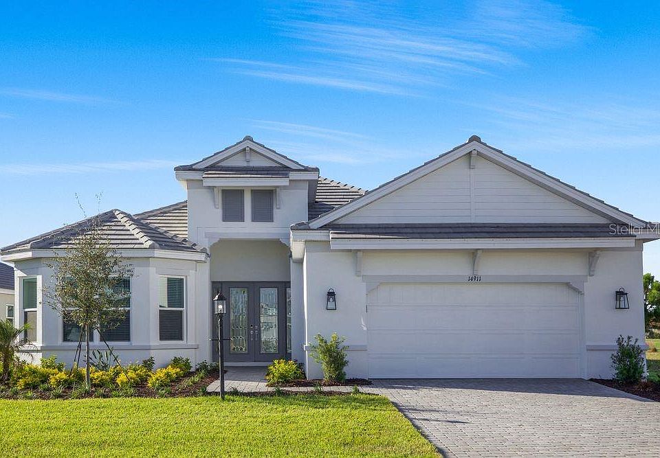 New Construction - Ready Now! Built by Taylor Morrison, America's Most Trusted Homebuilder. Welcome to the Pallazio at 14911 Contenta Loop in Esplanade at Azario Lakewood Ranch! This stylish new home features an open layout with a spacious great room, dining area, and gourmet kitchen with a large island and casual seating. The private primary suite offers a bay window, elegant bath, and oversized walk-in closet. Two guest bedrooms are located at the front—one with a private bath, the other near a full bath and a versatile study. Enjoy indoor-outdoor living with pocket sliding doors leading to a covered lanai with a built-in outdoor kitchen. Come explore the Pallazio and experience resort-style living at its finest! Additional Highlights Include: Gourmet kitchen, study in place of flex, bay window at primary suite, tray ceiling at primary suite and great room, 8' interior doors, extended covered lanai, outdoor kitchen with stainless steel vent hood, and tandem garage. MLS#A4659015 Resort-Style Living at Esplanade at Azario Lakewood Ranch, the perfect blend of relaxation and recreation! Enjoy the heated resort-style pool, state-of-the-art fitness center, and energizing aerobics classes. For outdoor enthusiasts, there are pickleball courts, scenic trails, Vitality Park, and if golf is your game, you'll love Esplanade's 18-hole championship course! Unwind with a facial massage or by the fire pit after a workout. Exclusive amenities like a Wellness Center, Culinary Center, and sports courts ensure there's something for everyone, whether you want to stay active or relax in style.
