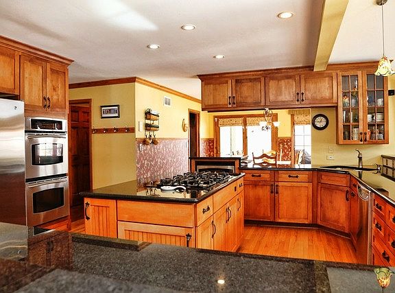 Wonderful Farmette on 5 acres adjacent to Forest Preserve. Gorgeous views from every window! Large kitchen w/granite counters, lots of Decora maple cabinets & ss appliances. Great room w/hearth area & a wall of windows/doors overlooking the patio, gardens & land. The breakfast area open to the screen porch w/private patio. Oversized garage w/work area. Updated master bath jetted tub. 2 stall horse barn.