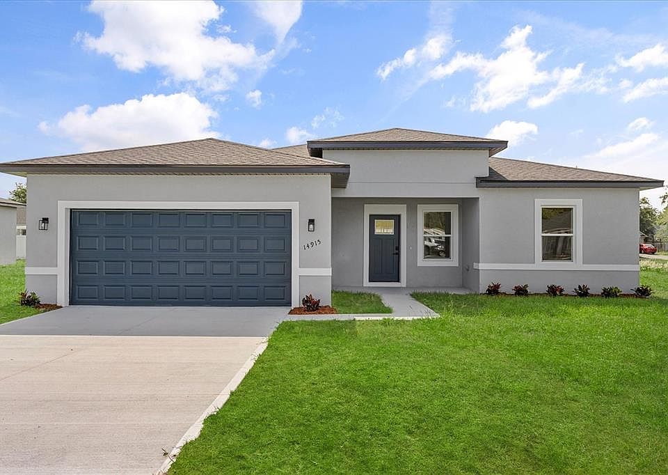 One or more photo(s) has been virtually staged. Welcome to this delightful four-bedroom, three-bath single-family home in the heart of Marion Oaks. Built in 2025, this residence offers a comfortable 1,865 square feet of living space on a generous 10,454-square-foot lot. The open-concept layout seamlessly connects the living, dining and kitchen areas, creating an inviting atmosphere for family gatherings and entertaining guests. The kitchen boasts modern appliances and ample counter space, ideal for culinary enthusiasts. Retreat to the spacious primary suite featuring an en-suite bath and walk-in closet. Three additional bedrooms provide flexibility for a home office or guest accommodations. Enjoy the Florida sunshine in the expansive backyard, ideal for outdoor activities or future landscaping projects. In a peaceful neighborhood with easy access to local amenities, schools and parks, this home offers comfort and convenience.
