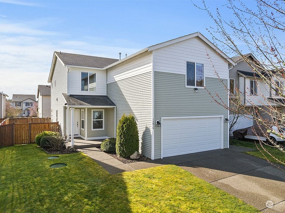 Don't miss out on this captivating two-story, 3 bed/2.5 bath home + loft! Bright and fully upgraded, it boasts hardwood floors and an open concept main floor for seamless living. The kitchen is a gem with all-new white wood cabinets, tile backsplash, waterfall quartz, new white appliances, SS range hood, and a spacious pantry. Upstairs, discover new carpeting, a versatile loft space, and a conveniently located laundry area. The primary bedroom offers serenity with its private en suite featuring double vanity, walk-in-closet, new porcelain floors, and quartz counters.