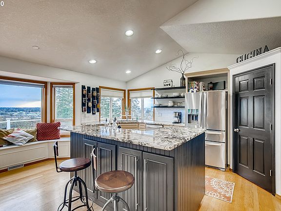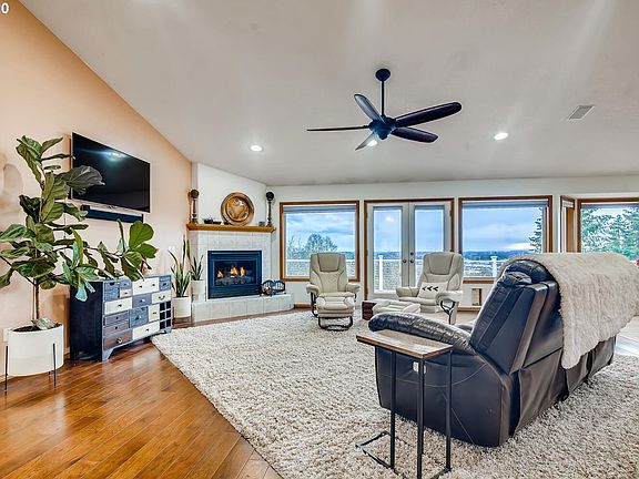 Beautiful hilltop home! Over 1 acre of space w/extended balcony & gorgeous city views! Brand new roof, fresh interior paint & new insulated garage doors. Vaulted great room w/floor to ceiling windows & lots of natural light! Lower level plumbed for kitchenette w/huge storage areas. Gas fireplace on each level. Roomy master w/jetted tub & walk-in closet. Office w/murphy bed for extra guests! Enclosed raised beds & garden area. GFA & AC. Ample room for parking & home warranty included! Call today!