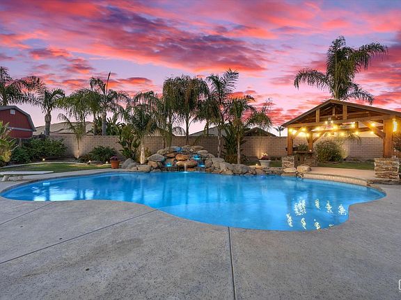 This stunning home in the gated community of Redwood Classics has so much to offer! This home features 4 bedrooms, 2 baths, open concept living area off entry, arched doorways, twelve-foot coffered ceilings, plantation shutters, tile countertops, stainless steel appliances, spacious master bedroom and bathroom with soaking tub and large walk-in closet, covered patio, and RV parking. Beautifully landscaped backyard with pool and rock waterfall, a Gazebo with sitting area, truly built for entertaining. Per appraisal this home is 2419sf. Schedule a showing and see this gorgeous home for yourself.