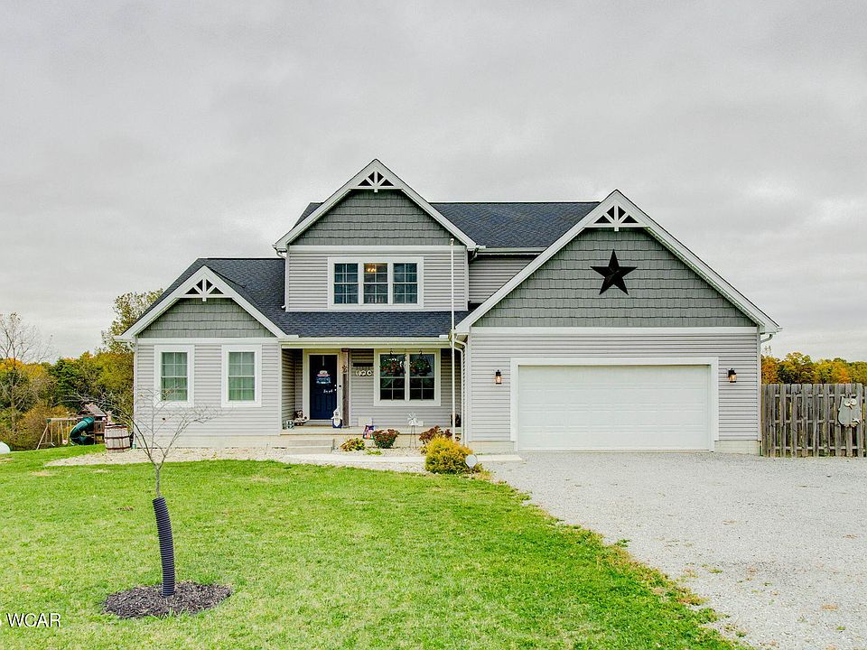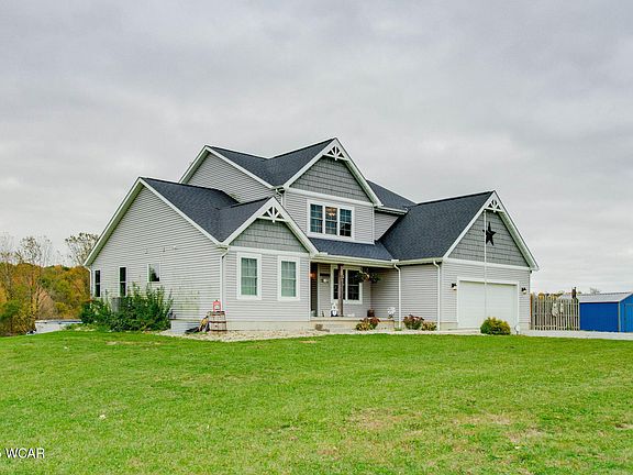 Built in 2019, this beautifully crafted 5-bedroom, 3.5-bath farmhouse sits on 3.43 private acres atop a hill, offering stunning panoramic views and peaceful country living just minutes from town.