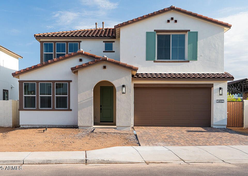 Lovely new 2-story home located in Gannet at Waterston Central featuring 3 bedrooms upstairs and 1 bedroom and 1 bathroom downstairs, a total of 3 1/2 bathrooms throughout, an office, spacious loft, an attached 2 bay garage, and outdoor living spaces. The designer selected kitchen includes a gas cooktop with a separate wall oven and microwave, custom backsplash, quartz countertops, and a recycle center. Other designer highlights include a 12' center pull sliding glass door in the dining room, wiring for surround sound in the great room, tiled flooring throughout with carpet at the bedrooms, maple mission stair rails, and 8' interior doors. The primary bath boasts a separate tub and custom shower. The home also is on a soft water loop, has pavers at the driveway, and so much more!