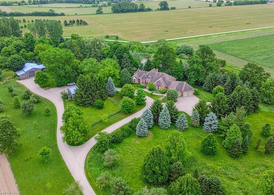 Space to grow, just minutes from the city. Welcome to 1492 Maple Bend Road, a rare 92-acre country property that blends natural beauty, agricultural potential, and room for family living- all within easy reach of Kitchener- Waterloo, Cambridge, and Guelph. With 50 acres of certified organic, workable farmland, 30 acres of mature sugar bush, and a selection of fruit trees—including apple, pear, and peach—this property offers the perfect balance of productivity and peaceful retreat. Whether you're a farmer, nature lover, or someone dreaming of a more self-sufficient lifestyle, this land offers the space and setting to bring your vision to life. At the heart of the property sits a spacious five-bedroom, five-bathroom bungalow with a walkout basement and nearly 6,700 square feet of total finished space. The scale and layout offer tremendous potential for transformation, with large principal rooms, excellent flow, and abundant natural light. Highlights include: A main floor primary suite with walk-in closet and 6-piece ensuite. Multiple living, dining, and entertaining spaces. Walk-out lower level with home gym and pool, wine cellar, rec room, office, and guest/in-law suite. Attached three-car garage and extensive storage throughout. Outside, you'll find privacy, a driving shed and workshop, panoramic views, and boundless possibilities. This is a fantastic canvas for your country dream house. Strategically located under 20 minutes to Waterloo Region International Airport and just over an hour to Toronto Pearson (YYZ), this property offers the best of both worlds: rural living with urban access. A unique opportunity to invest in land, lifestyle, and long-term potential — 1492 Maple Bend Road is ready for its new chapter.