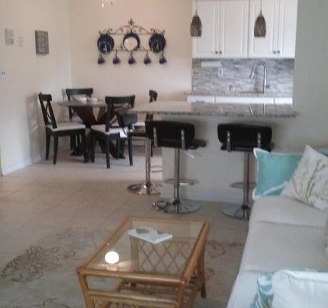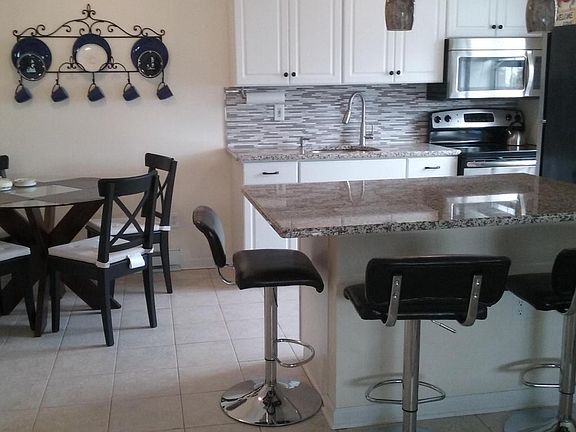 Calling all BEACH LOVERS!This beautifullyupgraded unit is waiting for you to enjoy.Tiled flooring thru out,carpeted bedroom, granite counter top & breakfast bar, glass tiled backsplash in kitchen + all SS appliances (stove never used)! New tiled bath,upgraded electric,new water heater.Building has intercom system, redone laudry room w/updated w/d. Low maintenence fee and complex across from beach. Private parking lot in back of building only steps to unit and beach.