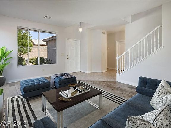 RARE FIND 5 Bedroom 2,618 square foot home in Green Valley with a Loft!! You don't want to miss the spectacular views of the mountains and the strip! New waterproof wood floors. Freshly painted modern 2-tone walls. Low maintenance desert landscaping with synthetic grass. Family room with spacious high ceilings opens to the light and bright kitchen. Upstairs loft can be a gameroom, office, teen room or upstairs living area. Conveniently located.