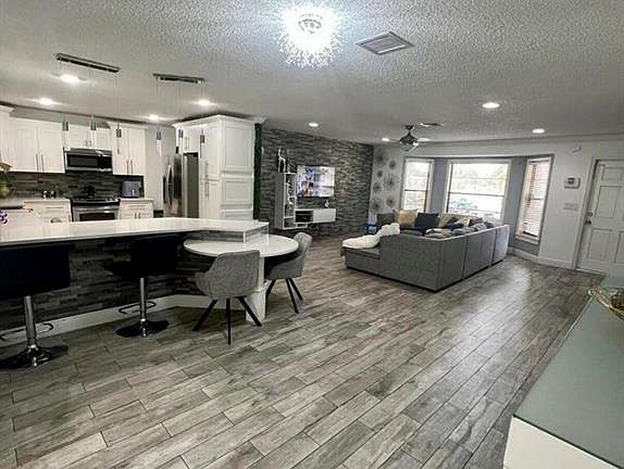 Rent is $2800/ Monthly +$500 additionally to include all utilities: electricity, water, high speed internet, lawn care, and trash. Small pets (up to 15lbs) are welcome! Unfurnished and beautifully rennovated single-family home. This stunning property offers a serene canal view. The home features a spacious driveway for up to three cars, and commercial vehicles are allowed. NO HOA RESTRICTIONS! Two efficiencies with independent entrances are already rented on both sides of the house.