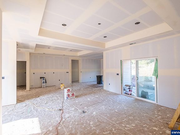 Brand-new 4 bedroom, 2.5 bath home offering thoughtful design and modern finishes throughout. Enjoy 9 ft ceilings, with trayed details in the kitchen, dining, and living areas that add a touch of elegance. The open kitchen features a spacious island, and plumbed for gas or electric range. Primary suite includes a tiled walk-in shower, separate bathtub, & walk-in closet with laundry access. Durable LVP flooring flows through the main living spaces, with carpet in the bedrooms for comfort. Smart bedroom separation adds privacy. Step outside through the slider to a 15x11 covered patio with wired ceiling fan—perfect for year-round enjoyment. Gas forced air heating and central AC keep the home comfortable in every season. A fresh start awaits—come see all this new build has to offer!