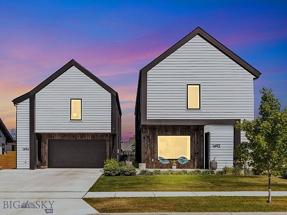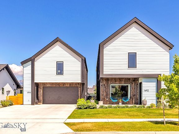 Your next chapter begins in this Architecturally Designed Custom Home + Detached Apartment (ADU) in Flanders Mill subdivision. Experience elevated Montana living in this impeccably crafted residence with a perfectly matched detached ADU, located in the heart of Bozeman’s desirable Flanders Mill. Just steps from parks and backing to HOA open space with year-round live water and uninterrupted Bridger Mountain views, this home offers a rare blend of nature, thoughtful design, and exceptional setting. The main home spans approximately 2,842 square feet and features four bedrooms and three and a half baths. A striking two-story foyer and soaring 10-foot ceilings on the main level set the tone for the architectural detailing throughout. The L-shaped galley kitchen combines form and function with quartz countertops, custom maple shelving, modern glass backsplash, stainless steel appliances, and a sleek counter window. The formal dining room and expansive living area with gas fireplace and 8ft tall sliding patio door, are perfect for entertaining or cozy nights in. The primary suite captures stunning Bridger views and offers a spa-like bath complete with floating vanities, a soaking tub, separate shower, and a spacious walk-in closet. A private guest suite includes a full ensuite bath, while all bedrooms feature elegant trayed 9-foot ceilings, adding dimension and airiness. Two more bedrooms and one full bath are also located upstairs. The detached ADU offers 702 square feet of stylish and flexible space above the detached garage. With a private bedroom, full bath with in-unit laundry, and a complete galley kitchen with stainless appliances, it’s ideal for guests, extended family, or rental income. Vaulted 9-foot ceilings in the living area open to a covered rooftop deck a tranquil setting with panoramic views of the Bridger Range, creating the perfect retreat. An extra-deep two-car garage adds versatility with its pull-through layout and overhead door to the backyard, making it well-suited for a gym, workshop, artist studio, or extra storage. Interior access to the kitchen ensures daily convenience, and the peaceful fenced backyard near HOA creek is complete with a relaxing outdoor sauna. This custom home with apartment has 2842 + 702 = 3544 sq ft is more than a place to live, it's a testament to intentional design and quality craftsmanship, nestled in one of Bozeman’s most desirable neighborhoods near schools.