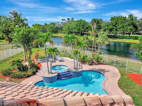 Former model home on model row! Amazing 4BD/3.5BA/2CG on a spectacular 10,648 sq ft huge fully fenced lakefront lot with stunning show-stopper pool with raised spa deck! Situated on a wide greenbelt cul-de-sac, centered by a charming tot-lot. Discover the ultimate backyard escape with an expansive garden, large covered paved patio & peaceful, private lake views. All incredibly generous sized bedrooms are upstairs, (one perfect as "mini master" w/ ensuite bathroom), all with walk-in closets! The kitchen features granite countertops, stainless appliances, wood cabinetry & pantry w/ample organized storage. Tile downstairs, wood laminate upstairs, LED lighting. Trendy touches throughout! Fabulous resort clubhouse down the road with amazing amenities, all covered by HOA. A+ school up the road! You won't find a home of this size on a lot like this anywhere in Savanna, perhaps not even in all Weston! Simply a huge backyard on peaceful private lake, all fully fenced with tons of room to play! Plus a tot-lot literally steps from the home, which is on a wide greenbelt cul-de-sac, former model row. For a home this size, the bedrooms are all a fantastic size - LARGE - with very generously sized walk-in closets. With Savanna's resort style clubhouse just up the road, you're going to enjoy life in this highly sought after guard gated community in Weston! Welcome home!