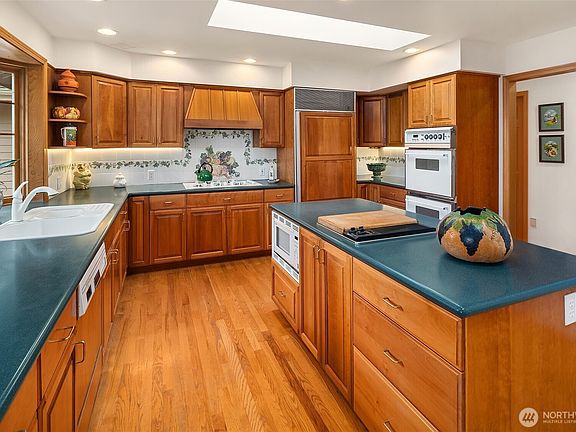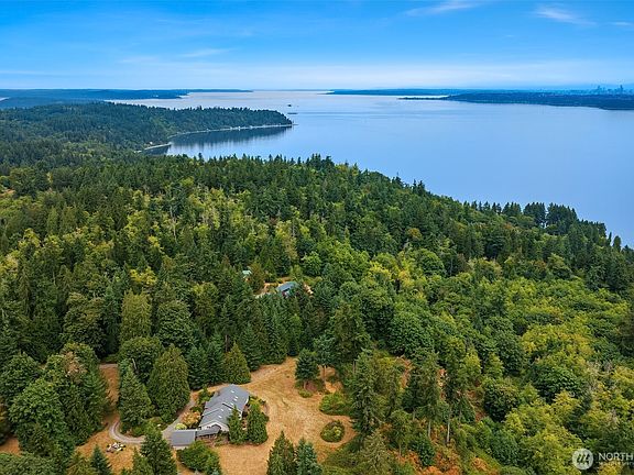 Positioned at the apex of 10 rolling acres sits this sprawling custom home with 180 degree views that span across the East Passage, Cascade Mountains all the way to Mount Rainier. This traditional home is expertly designed with generous formal spaces that flow seamlessly, opening to the views and many breathtaking outdoor spaces. The large kitchen is a star and features a breakfast room with fireplace. Outside, the spectacular grounds have been professionally planned and include impressive boulders that form a waterfall and pond adjacent to view decks and terraces. A large barn with 2 stalls, garden area, a 2 car garage attached by breezeway, and a circular drive round out the list of impressive features. A rare and special property.