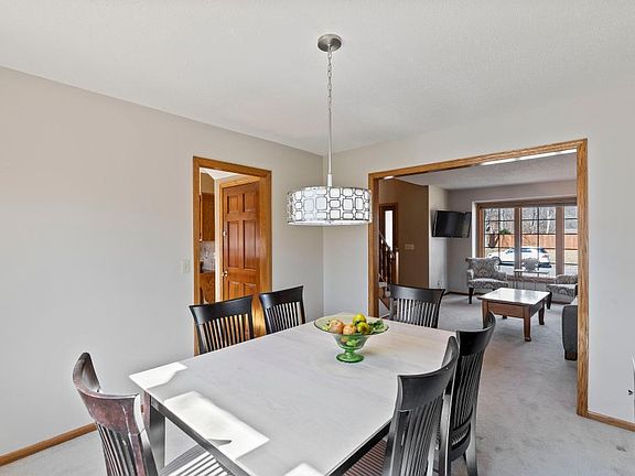 Charming Two Story Walk-Out overlooking a fabulous backyard setting. Light and bright floor plan boasting an open Kitchen & Family Room design. Kitchen boasts granite counters, stainless appliances & bayed dinette area. Large Main floor den - great for working from home. Family Room with brick Fireplace, built in bookcases and Atrium door to spacious deck overlooking nature filled backyard, walking trails & pond. Master suite with large walk-in closet, separate tub and shower. Lower level Amusement Room with wet bar and game table area, 4th bedroom, and access to fieldstone patio. Grab your running shoes and fishing pole! Lake and Park down the block. Fish Lake a hop skip and jump down the road too!