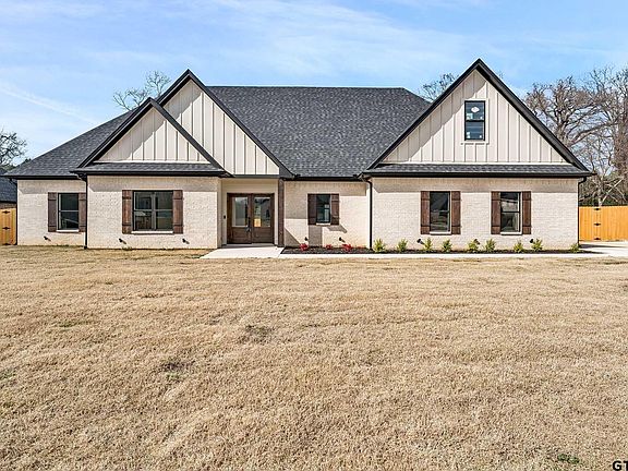 Modern Farmhouse-1 Story Home in Lindale ISD! New construction home with an amazing layout--4 bedrooms, 2 baths with open concept. Kitchen offers custom painted cabinetry, 8’ island, quartz counter-tops & a walk-in 7x7 pantry. 7x12 Mud room with cabinets off the garage. Spacious family room with fireplace. The owner’s retreat is separate from the other bedrooms & has a tray ceiling. En Suite bath offers a separate shower, garden tub & double vanities with quartz plus a linen closet. Huge 9x11 walk-in closet with access to the laundry room. 3 generous size bedrooms. Hall bath- double vanities, linen closet & private water closet. 18x18 covered patio with a peaceful view looking at trees. Oversized 23x21 side entry garage with 15x4 bump out & a 5x5 closet. Outside city limits on half acre lot. Extremely functional floor plan is the perfect place to call home. Come see today!