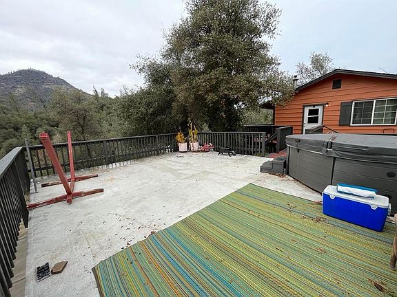The cutest cozy cabin with upgrades and renovations is waiting for you near Shasta Lake! You sure will be cozy nestled on your hill with beautiful mountain views. Enjoy the stars in your hot tub on the upper deck. Upgrades include. Harmen 2021 ceramic pellet stove, new tile and carpet, new exterior and decking paint, new roof with awning for washer and dryer, new windows, new high-end carpet, updated lighting, all electric home, a/c window unit, 2021 3-person hot tub 220V, New Gaco decking over garage, Washer/Dryer included, RV or boat parking, under home access, friendly cul-de-sac. Walking distance to the neighborhood dining and store.