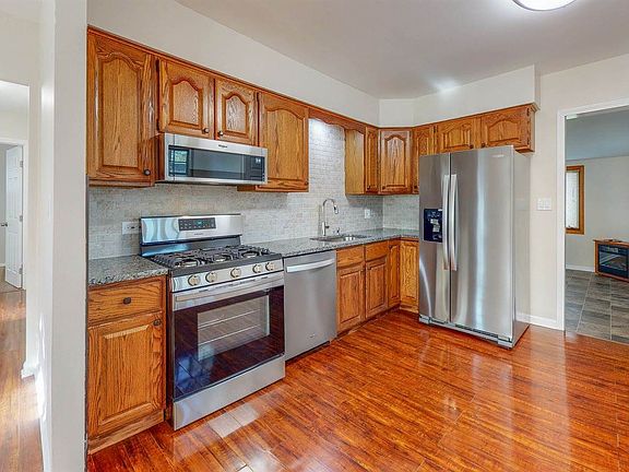 COMPLETELY REMODELED home with 3 bedrooms, 1 bathroom, a GIANT BONUS ROOM, a 2 car garage, and a huge backyard! The kitchen is equipped with all BRAND NEW stainless steel appliances, plenty of cabinet space, an oversized stainless steel sink, granite countertops, and a modern look tile backsplash. The bathroom is also brand new with bright and modern finishes. The bedrooms each have plenty of closet space and brand new wood look laminate flooring. The bonus room adds a lot of space and can be used a family room, play room, rec room, office, etc. The huge backyard is almost completely fenced in. Brand new stainless steel appliances, air conditioner, furnace, and water heater. Conveniently located close to everything.....schools, parks, shopping, restaurants, transportation, and Metra. Check out the 3D virtual tour to take a look inside!