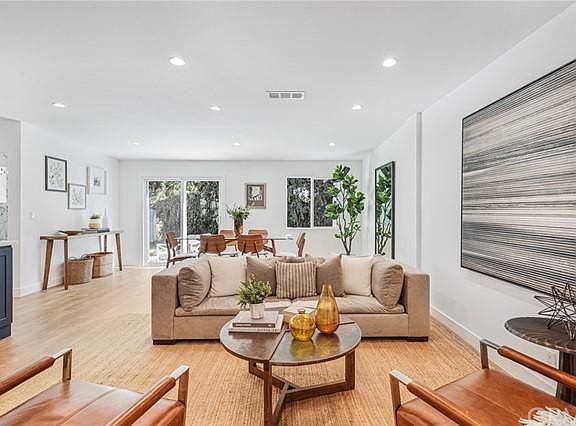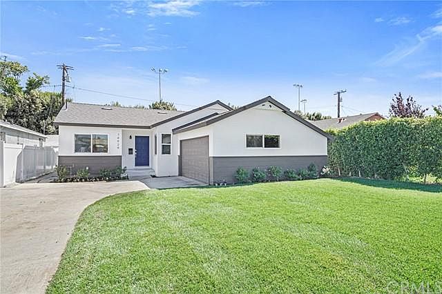 Welcome to this Breathtaking, reimagined remodeled home! Offering approximatly 1,627 square feet on one level, with 4 Bedrooms, 3 Full Baths and Office .Top Notch amenities throughout. With this redesign, you will notice the copious amount of natural light that illuminates this OPEN FLOORPLAN! Laminate wood flooring, recessed lighting & ceiling fans. Gorgeous Kitchen featuring quartz countertops, stainless appliances and large island with seating for entertaining. There is a office w/glass French doors off 1 side of kitchen, then a full bath off the other side. Dinning area off living area with sliders doors leading to patio/backyard. Master suite has his/hers mirrored closet doors, slider leading to patio and private luxurious bath. The other 3 bedrooms are spacious with full bath/tub down the hall. Adding to the appeal, the exterior upgrades include, New HVAC, paint, roof, windows, electrical, water heater in garage, garage door, landscaping, sprinklers and much more. This is a must see!