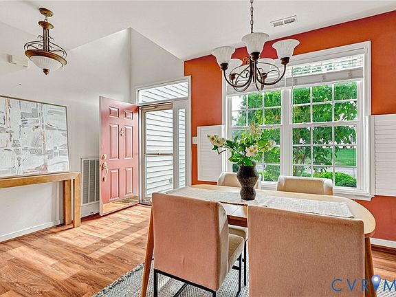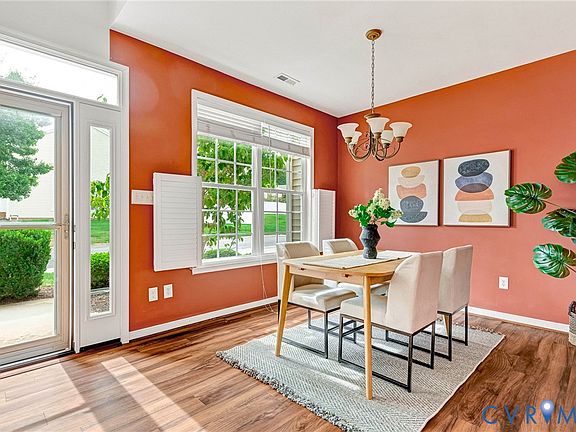 Beautiful Midlothian waterfront townhome just 5 minutes to Powhite Parkway! As you enter the foyer you are immediately captured by the high ceilings, and you are awash in natural light! A charming dining room sits immediately to the left. It connects to the chef's kitchen featuring 42-inch-high end cabinets, granite counter tops, a tile backsplash, and a breakfast nook with a view of the Lake. It opens to