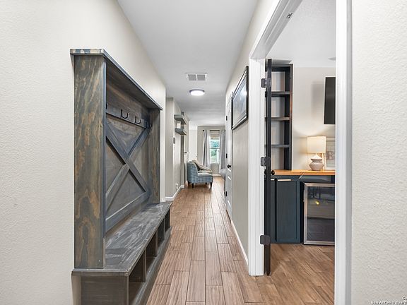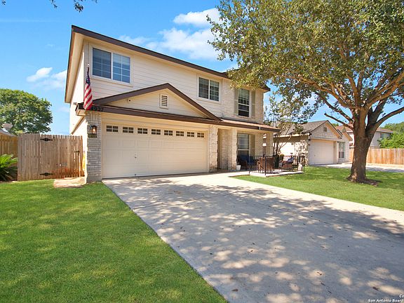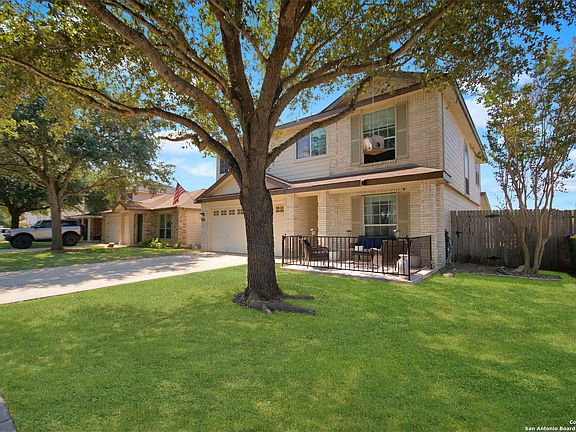 *GREENBELT LOT!* Backing up to the scenic Olympia Hills golf course, this stunning 4-bedroom, 2.5-bath home with an additional OFFICE AND LOFT space! Some of the highlights of this home are the walk in closets, covered back and front patios, remodeled pantry for ample storage, open layout, and the beautiful oversized backyard! Boasting a thoughtful layout with generous interiors, versatile family spaces, and a dedicated office accented by elegant French doors, it's been refreshed with new paint inside and out-including the cabinetry-and upgraded with efficient central air plus contemporary kitchen essentials. The downstairs welcomes you with durable wood-look tile throughout, ensuring effortless living from day one. Step out to the expansive covered terrace, where you can savor sunrise brews or sunset grills with uninterrupted views of the fairways. Perfectly positioned for quick commutes via I-35 to Randolph AFB, Fort Sam Houston, SAMMC, local eateries, retail spots, and the rolling hills beyond, it's the ideal retreat waiting for you.