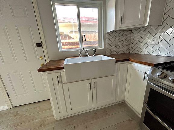 Welcome to our awesome 2 bed 1 bath home. I, the owner, used to live here and just moved out. It has a lot of little upgrades like an Instagrammable kitchen with a farm house sink. I built the Butcher Block countertops myself and they turned out really nice. The stove, fridge, and microwave come with the unit. We had to buy new ones at our new house. If you are the cook in the house you should know the stove is a double oven (convection on the top one), has a griddle in the middle and a super hot burner on the right. It has a timer for both the top and bottom ovens and a bunch of electronic settings you can fiddle with. My wife had a great idea for the living room wall which she painted light green at the top flowing to a darker green towards the bottom. The living room also has a huge window that lets in a lot of light. We ordered a custom blind for it which works perfectly. Another bonus is we put canned lights in so the living room always has as much light as you need. You won't need to buy a single lamp or worry about ugly yellow lighting. Both of the bedrooms have new white blinds. They are solid and sturdy. I hate those cheap aluminum ones that always look like they lost in a fight. Each bedroom also comes with a closet and storage above it. The sliding doors are made from real wood and the doors never come off the tracks. Next to the bathroom there is room for a stackable laundry set. Then some storage built right next to it. The bathroom itself recently got an upgrade. We threw out the old vanity and put in a new light, mirror, and faucet with storage under it. Honestly it is the best Home Depot has to offer. The whole house has been repainted, touched up etc. You know the drill. The part we really like is that it is behind 15000 Osage ave. We rent out the front house and lived in the back off the street and it is nice and quiet. The only downside is sometimes Amazon forgets where we live. It shares a driveway with the front house and has 2 dedicated parking spots. For those of you who need a garage where you can lock up your tools this is for you. There are 4 industrial grade 3 point locking outdoor cabinets. The shelves can hold a bunch of weight and dust can barley get inside. You won't be surprised by any spiders or critters when you go to get something from inside. For pet lovers, yes we take pets AND there is a back area where they can run around. The front patio has a gate that closes. There is also a gated dog run that goes behind the house around to the carport. So you can let them have the patio and the run or just one of them. The water heater, who doesn't love hot water? Well this one is only 2 years old and it is 40 gallons. Should give you enough water to shower the whole family and then some. Now for the most important part, the internet. Spectrum has service already set up for the unit. It comes into the house at the living room next to the big window. Just in case you wanted to put it in the back bedroom I ran an ethernet cable through the attic to the back bedroom so you can sleep next to the router if you wanted to. I know it has been raining a lot lately. You need to know we already had a roofer come by and touch up the roof. After that they ran water on the roof with a hose for 20 minutes straight and I am happy to say we have not had any leaks this year. A special note about our security door. It was a family gift and they went all out. It locks at 3 points and has a metal screen which does let in the breeze. Most importantly it looks great and it has a really smooth swing until it clicks closed. It's strangely satisfying. Note that I did not turn on any lights when I took these photos. You are seeing just the natural light that comes into the house. Owner pay trash, tenant pays everything else. For those of you with pets there will be an additional security deposit charge. Please note that gardening is the tenants responsibility. Sometimes the weeds grow like wildfire and you'll need to cut them down about once every 2 months. Our favorite tenant has great credit and has 3+ months of rent in the bank. We will call to confirm employment/income sources.
