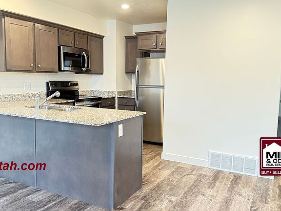 This townhome truly stands out with its unbeatable location! LVT flooring throughout for a modern touch. The kitchen boasts granite countertops and stainless steel appliances, perfect for the home chef. Additionally, the fully finished basement adds valuable living space, while the one-car garage and two driveway parking spots ensure ample parking. Outstanding parks, and the fantastic bike and walking trails nearby, offering endless outdoor activities right at your doorstep. Located just minutes away from Mountain View Corridor, close to shopping, dining, and entertainment options. Plus, with only a 15-minute drive to Silicon Slopes and close proximity to I-15, commuting is a breeze. To top it all off, Internet is included! Sorry, no pets. Applicant to verify all information.