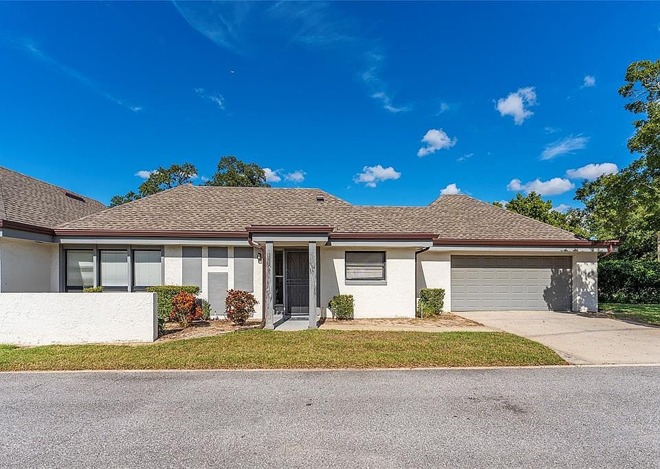 Motivated Seller! Single-story villa that perfectly combines comfort and functionality. Featuring a new roof and updated electrical systems, this home offers a spacious great room and a cozy dining nook—ideal for both everyday living and entertaining. Relax outdoors on your large screened patio overlooking a beautifully landscaped courtyard, perfect for gatherings or quiet mornings. The primary suite includes an en-suite bath and a closet, while the additional bedroom and full bath provide comfortable accommodation for family or guests. Nestled on a corner lot, this villa offers maintenance-free living through the HOA, which covers exterior upkeep, lawn care, and access to the community pool and clubhouse. Conveniently located just minutes from shopping, dining, and local attractions, this property is ideal for investors or anyone seeking a low-maintenance lifestyle. Additional highlights include a rare two-car attached garage, spacious rooms, abundant natural light, and fresh interior paint. This property is being sold as-is—bring your design ideas and make this home your own! ¡Hablo Español!