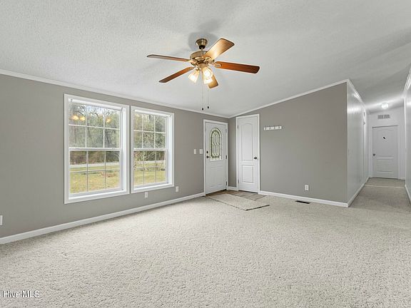 This awesome manufactured home on permanent foundation is on a 2.2 acre wooded lot. This home has an open floor plan with a large kitchen and center island with tons of cabinet space, a chefs dream! This home has 3 Bedrooms, with a room that can be a 4th bedroom, 3 full bathrooms, and new LVP floors just installed. Large primary suite and fresh paint in most of the home! Large kitchen with center island overlooking the living area. Make this Elizabeth City Oasis yours today!