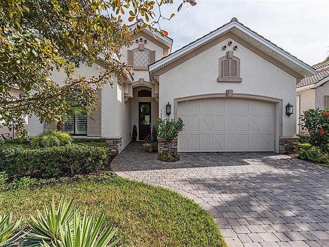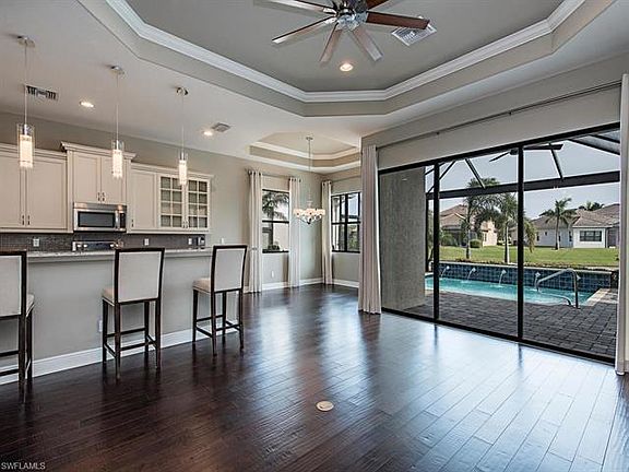 H.12649 Beautiful homes start with detail planning of the background finishes and this Seville will absolutely complement nearly every decorating style. Soft contemporary colors grace the walls and cabinet finishes all coordinated with custom lighting and window treatments. Gorgeous wood floors have been used throughout the home so no tired worn-out carpeting...ever! The soaring ceilings and large windows allow the light to fill each room of this open floor plan. A stately entry hall with 8' foot doors leads to each of the guest bedrooms and the roomy den which includes a spacious niche perfect for a closet making this a 4th bedroom. The master suite enjoys morning sun and glistening water of the lake. Truly a move-in ready home. This low-density friendly neighborhood features 24-hour gated access, a community center with pool, spa, community room, fitness center and kids play area. Great schools, shops, restaurants are all nearby and the beaches and Naples cultural attractions are minutes away.