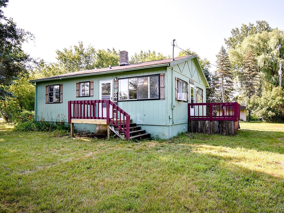 Country home with 2-3 beds and a full basement on almost 1/2 of an acre lot! The home features an open kitchen/living area, storage space in the hallway, and a possible 3rd bedroom/office. Outside, there are front and side decks, two sheds, and a spacious yard. Call today for your personal showing!