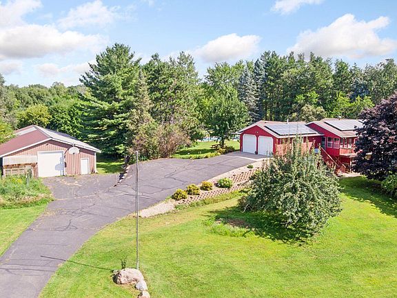 The land is perfect for hobby farming, with fenced pastures, a chicken coop, and mature fruit trees—including apple, cherry, plum, and pear. A massive 2,800+ sq. ft. pole barn provides endless storage for equipment, vehicles, or livestock. Inside, enjoy 3,850 finished square feet, featuring a large living room, eat-in kitchen, and primary suite with a walk-in closet. The lower-level walkout offers a huge family room, game room, office, and bonus space, ideal for additional living or entertainment. A wood-burning stove and solar power add warmth and energy efficiency.