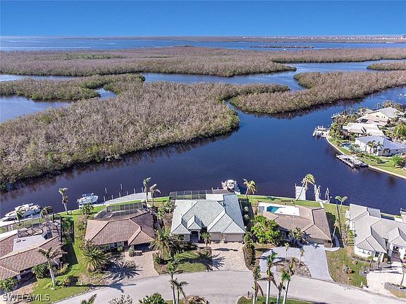 Hurricane Ian produces opportunity of choice as this luxurious custom home on specimen gulf access waterfront lot is available for the first time due to storm remediation project. Owner decided it will be best for buyer to choose remodel details including flooring, colors, etc. You will not believe the sunset views from 105 ft of seawall overlooking a basin intersection of mangrove shoreline Shell Creek. The snook fishing, dolphin watching, and manatee sightings here are unbelievable! Built in 2013 by Riverview Homes, specs include 3,223 sq ft of living area, 4 bedrooms, 3 baths, home office, great room, and 3-car garage. The outdoor living area features oversized lanai, pool, spa, cage, summer kitchen, and fireplace. Dock and boatlift on the optimal west side of Shell Point Blvd enable 8-minutes quick access to San Carlos Bay. You will have this exceptional property shining like new in a few short months to enjoy it for a lifetime. Call now to arrange a personal preview and learn more.